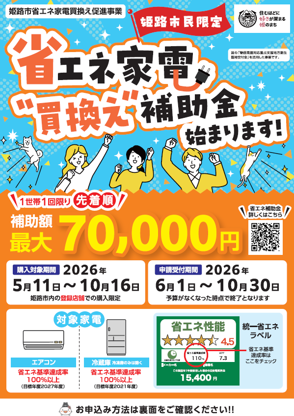 姫路市からエアコン・冷蔵庫の買換え補助金が出ます!